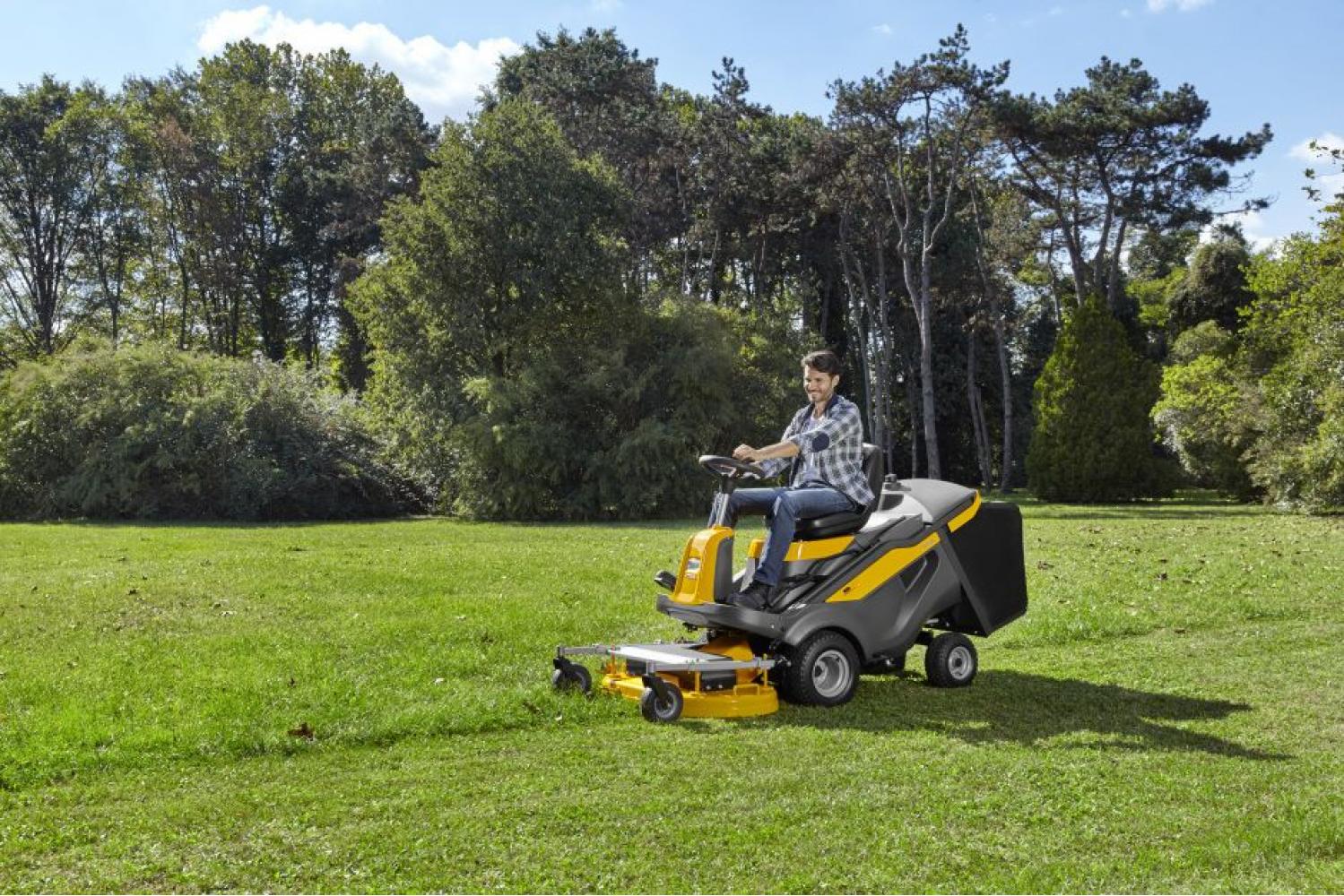 • Меньшая мощность: Несмотря на постоянное развитие технологий аккумуляторов, аккумуляторные райдеры всё ещё не обладают мощностью бензиновых моделей и могут не справляться с долговременной обработкой больших площадей.